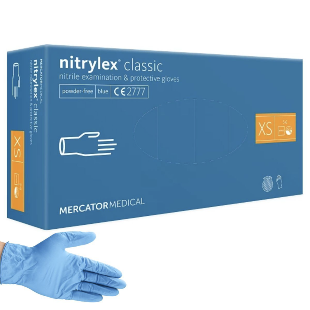 "Mercator Nitrylex Classic" nitrilo pirštinės be miltelių XS (100 vnt.), mėlynos